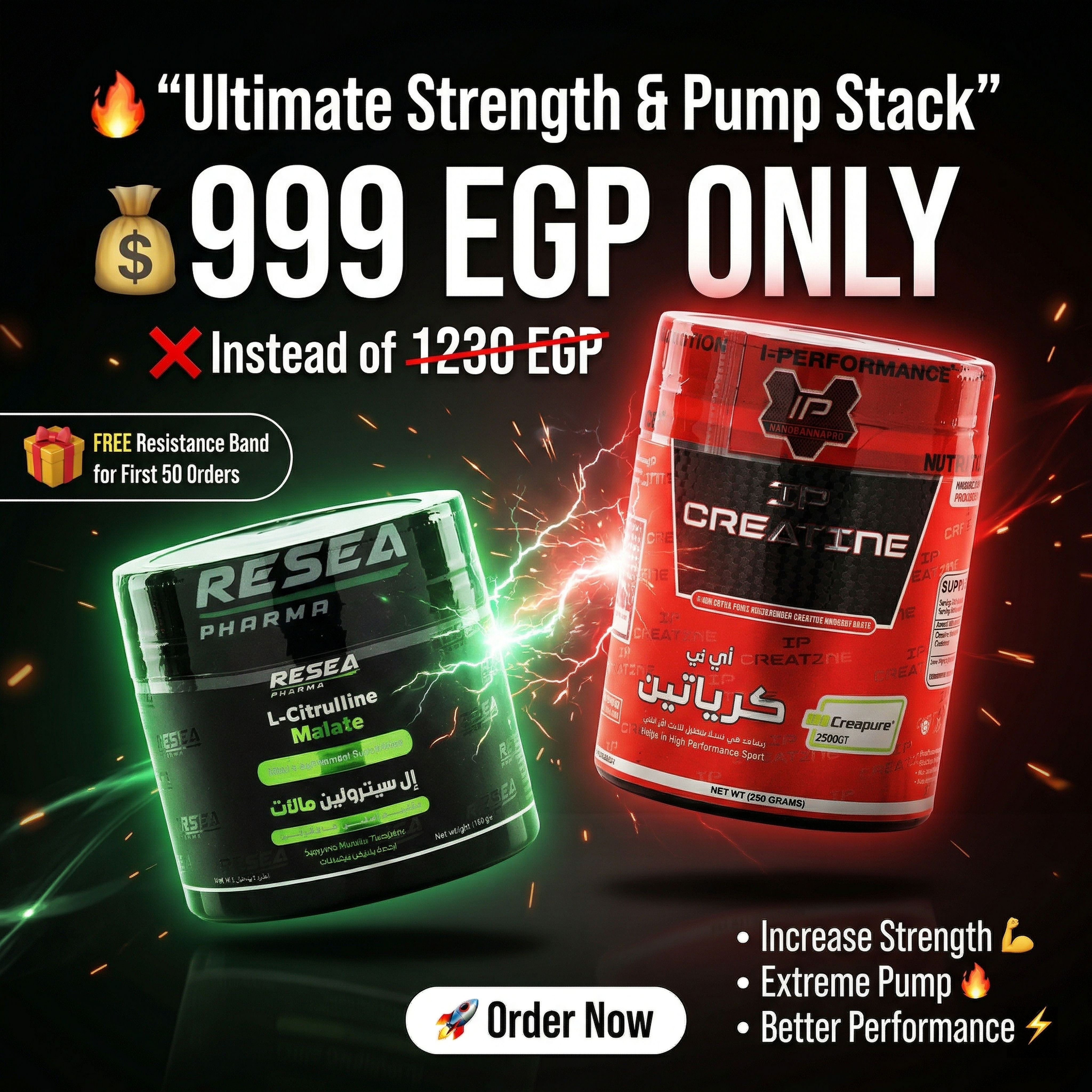 محتويات العرض: ✔️ IP Creatine Creapure® – 250 جم ✔️ Citrulline Malate – Resea Pharma – 180 جم